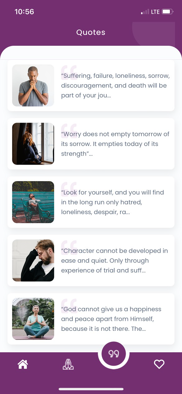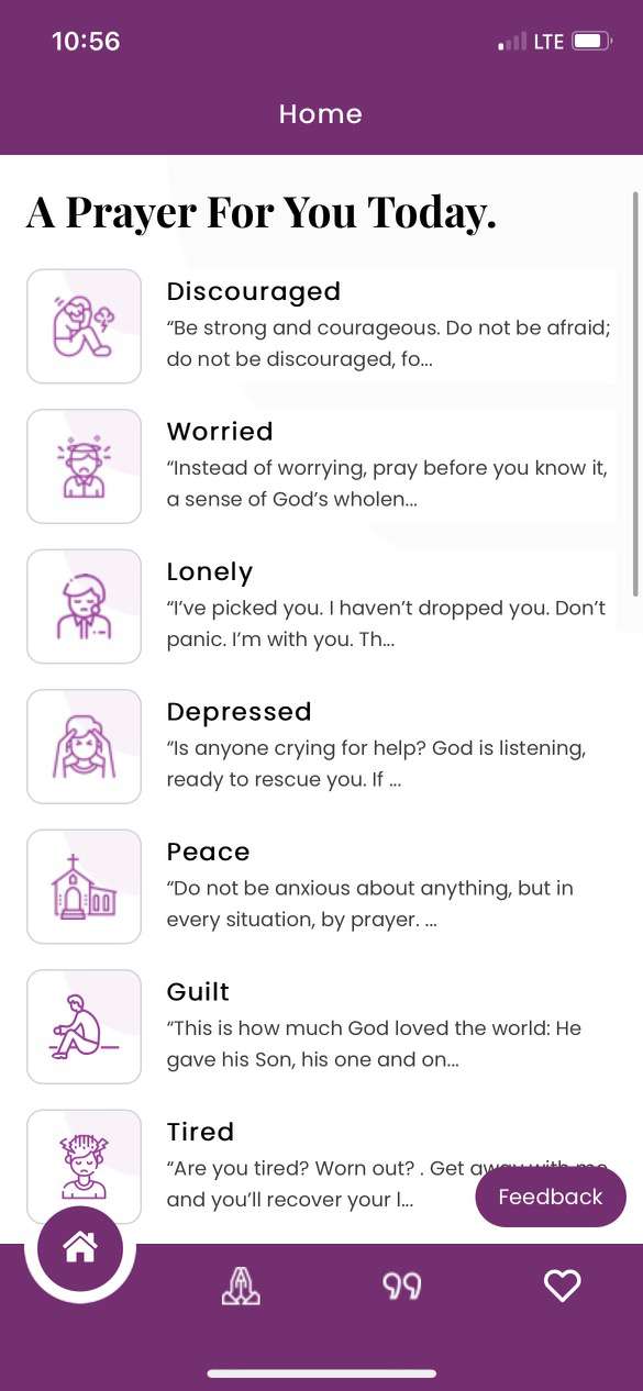 WePray delivers not only heartfelt prayers on daily issues, but also allows you to save favorite quotes and prayers. The purpose of WePray is simple… allow everyone and anyone access to prayers recorded by regular people, who like our users, express a need to engage the Creator for daily encouragement.